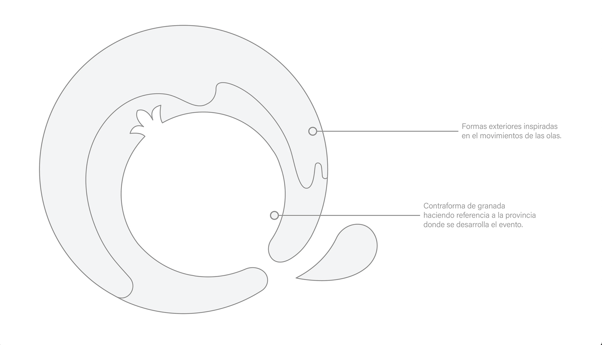 El imagotipo es una solución conceptual que nace de la contraforma de una granada integrada en el movimiento dinámico de las olas del mar. Esta fusión crea un símbolo reconocible que representa la esencia del evento: la superación deportiva en el litoral granadino.